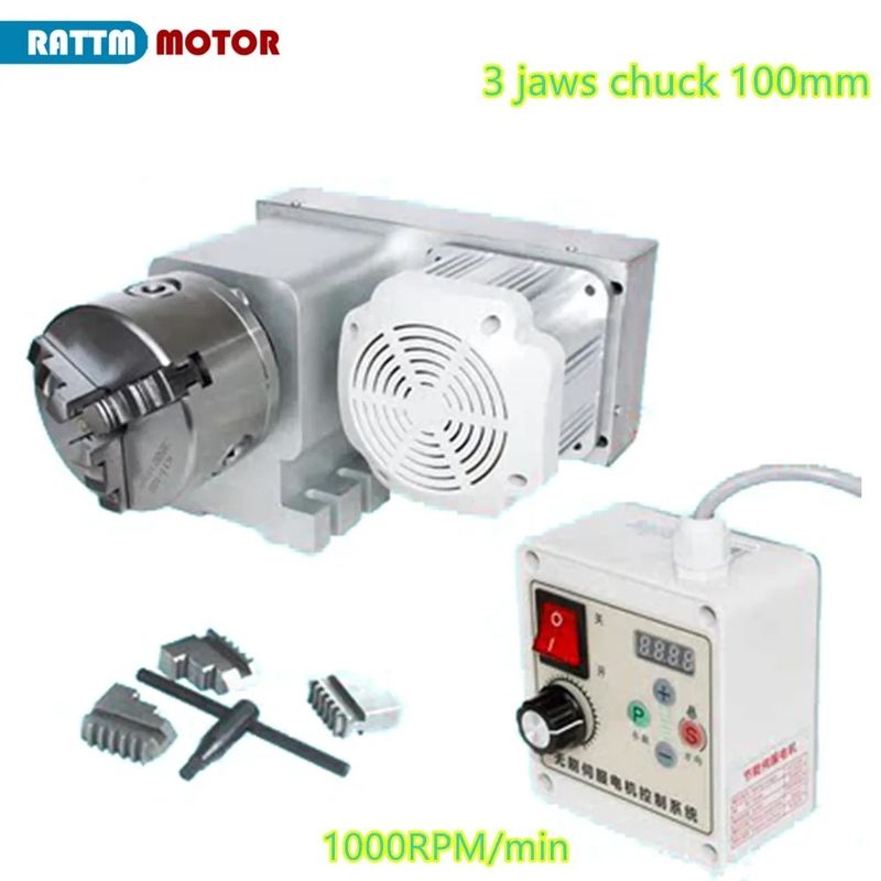 Velocidad ajustable de CNC Axis rotativo 4to 4to eje 3 / 4 mandíbula de chuck 100mm cabeza de índice de división + controlador de motor de servo